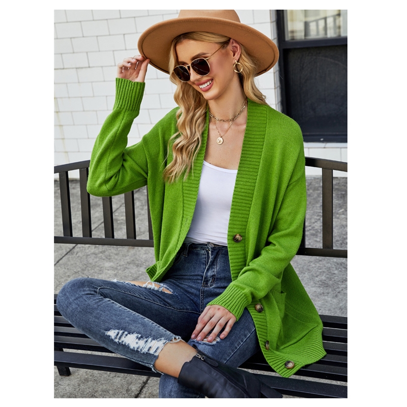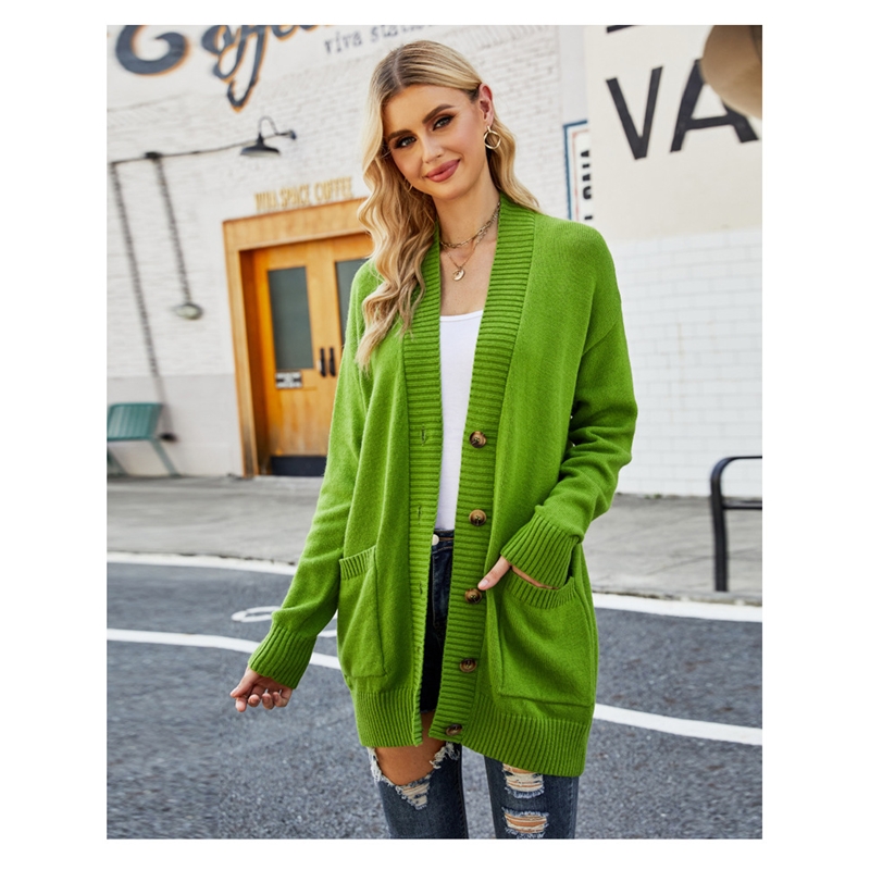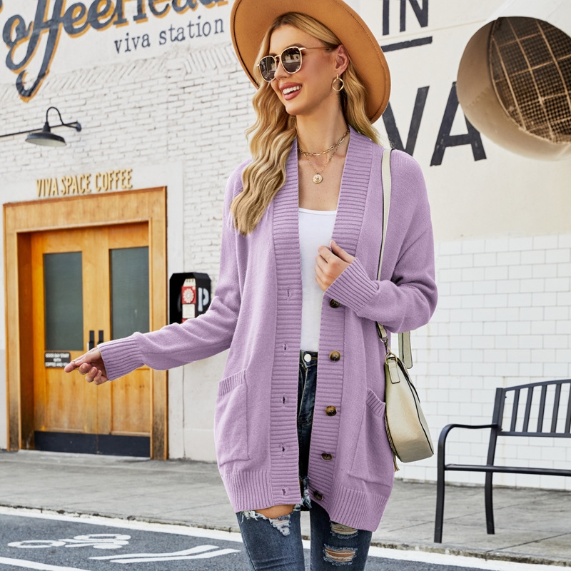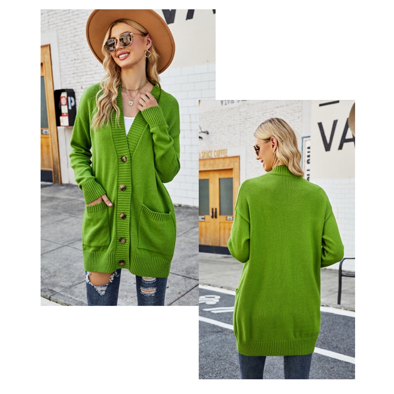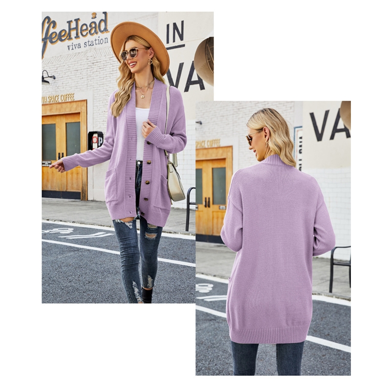 1. This Retro Solid Color Midi Cardigan Sweater features a timeless look with long sleeves and buttons closure.