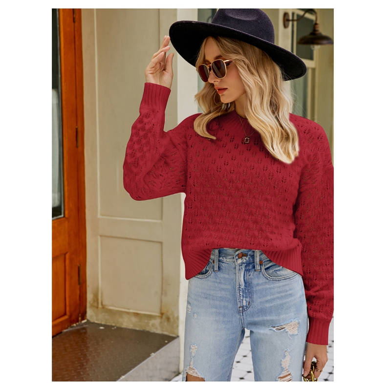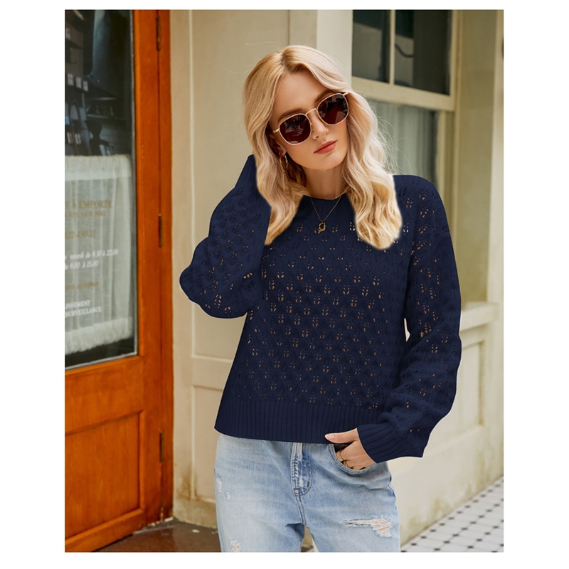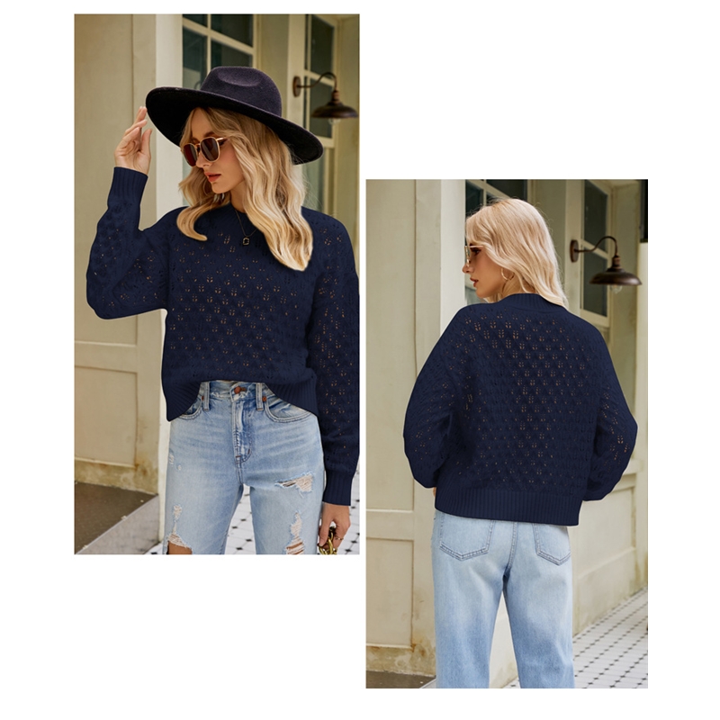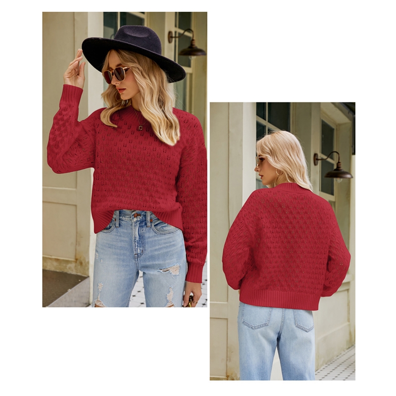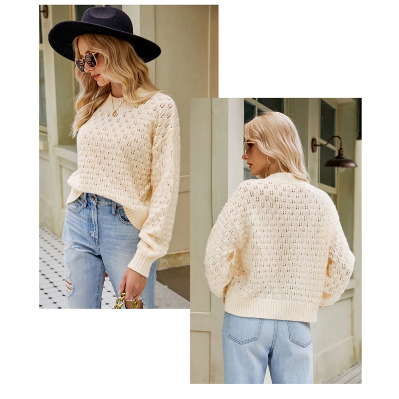 Solid Color Long Sleeves Crewneck Hollow Pullover Knitted Sweater