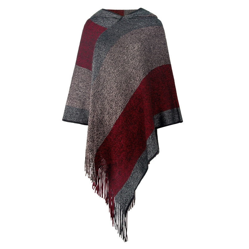 Knitted Colored Striped Hooded Cape Shawl Pullover