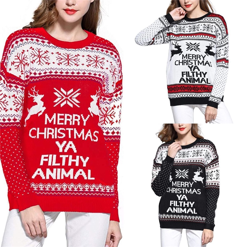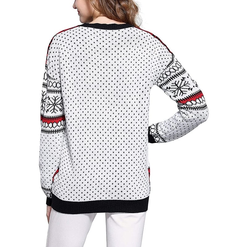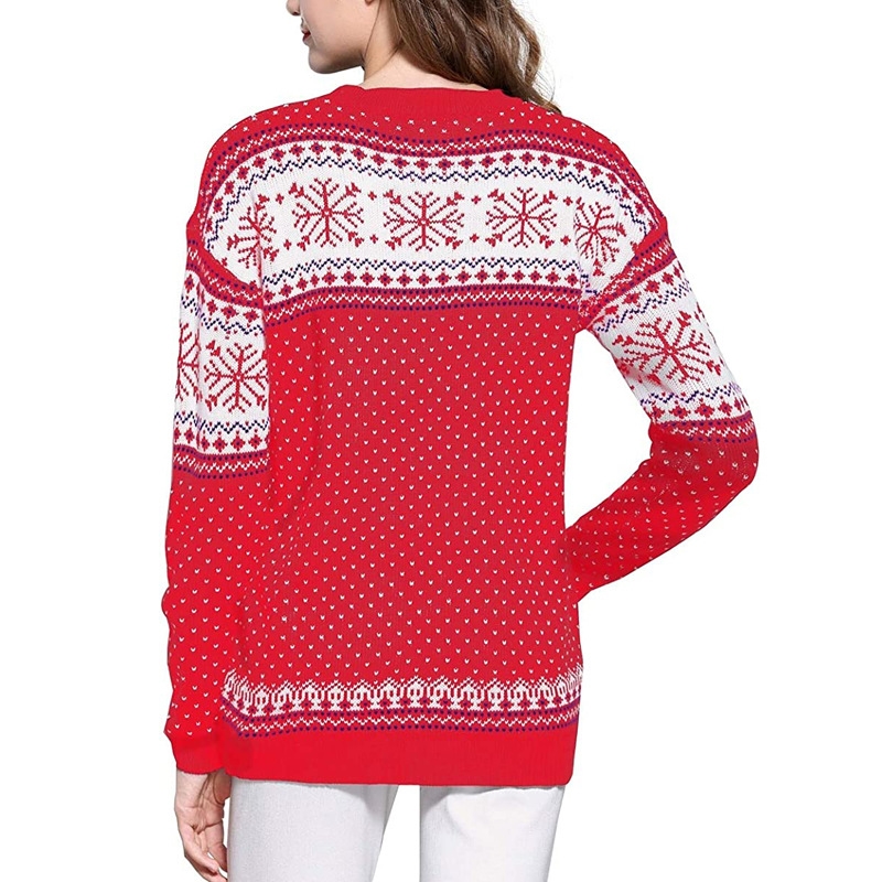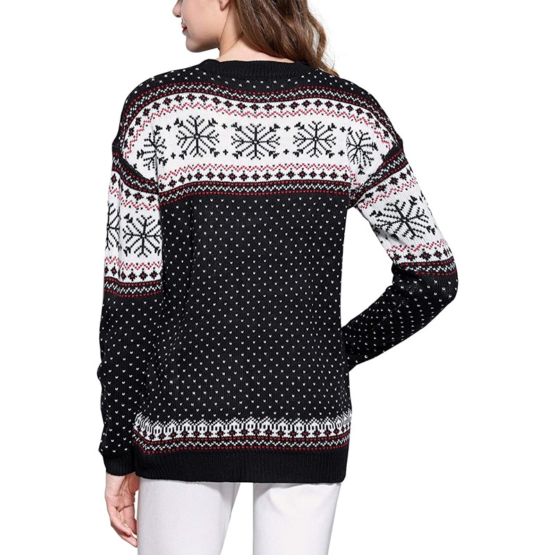 Contrast Color Crewneck Long Sleeves Jacquard Christmas Sweater