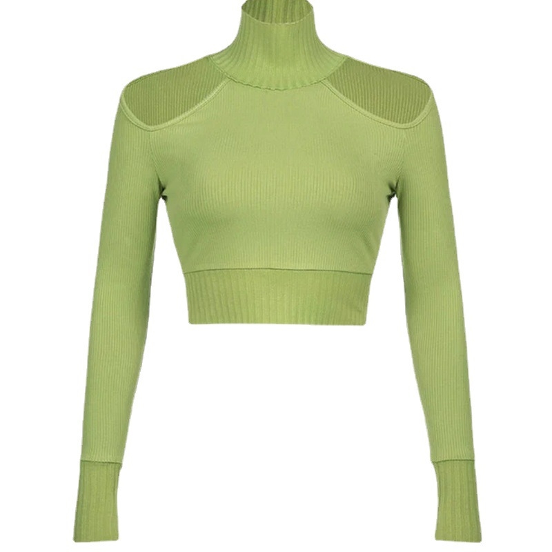 Solid Color High Neck Hollow Slim Cropped Knitted Sweater