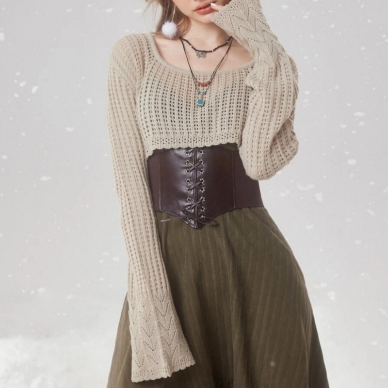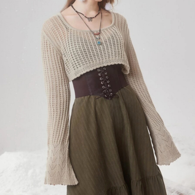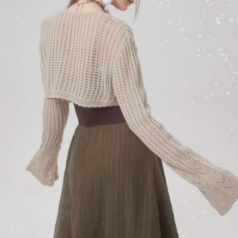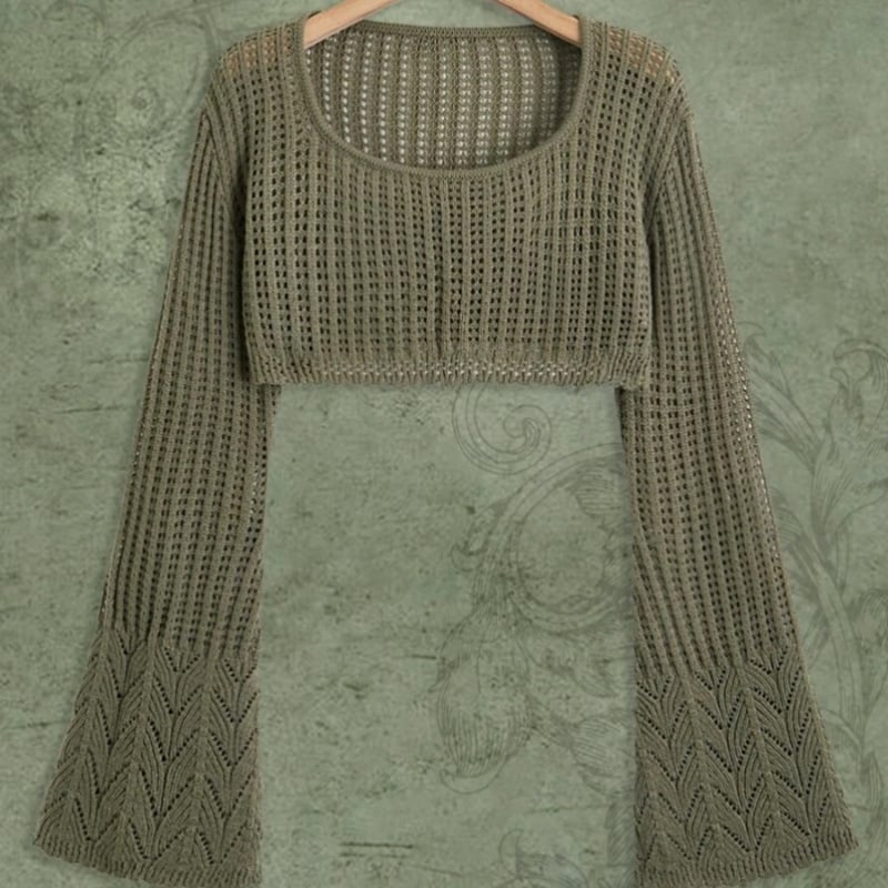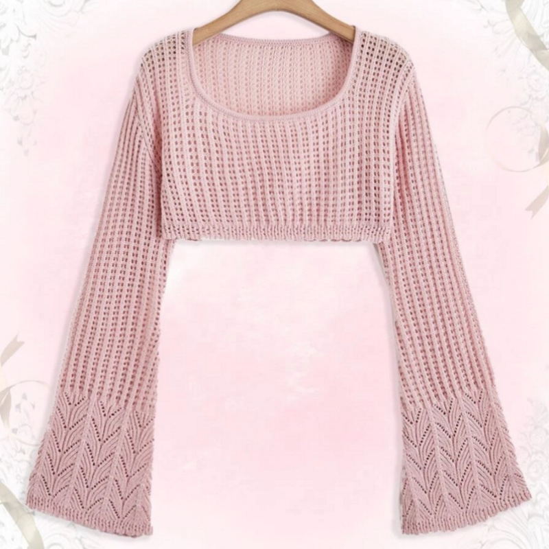1. Material: This Casual Loose Cropped Hollow Thin Knitted Sweater is made of high-quality and soft knitted fabric that is perfect for wearing in cooler days.