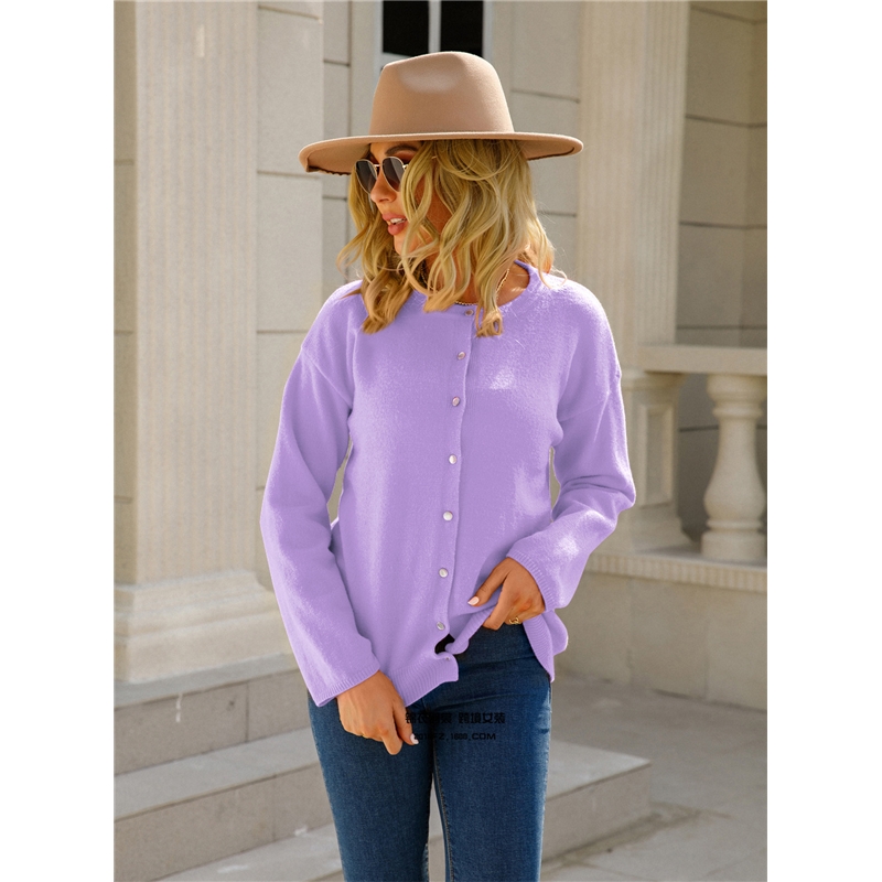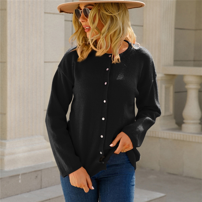 Solid Color Crewneck Long Sleeves Buttoned Slim Knitted Cardigan Sweater