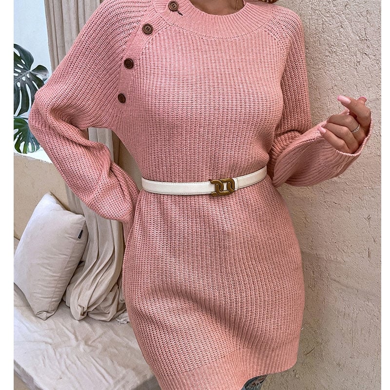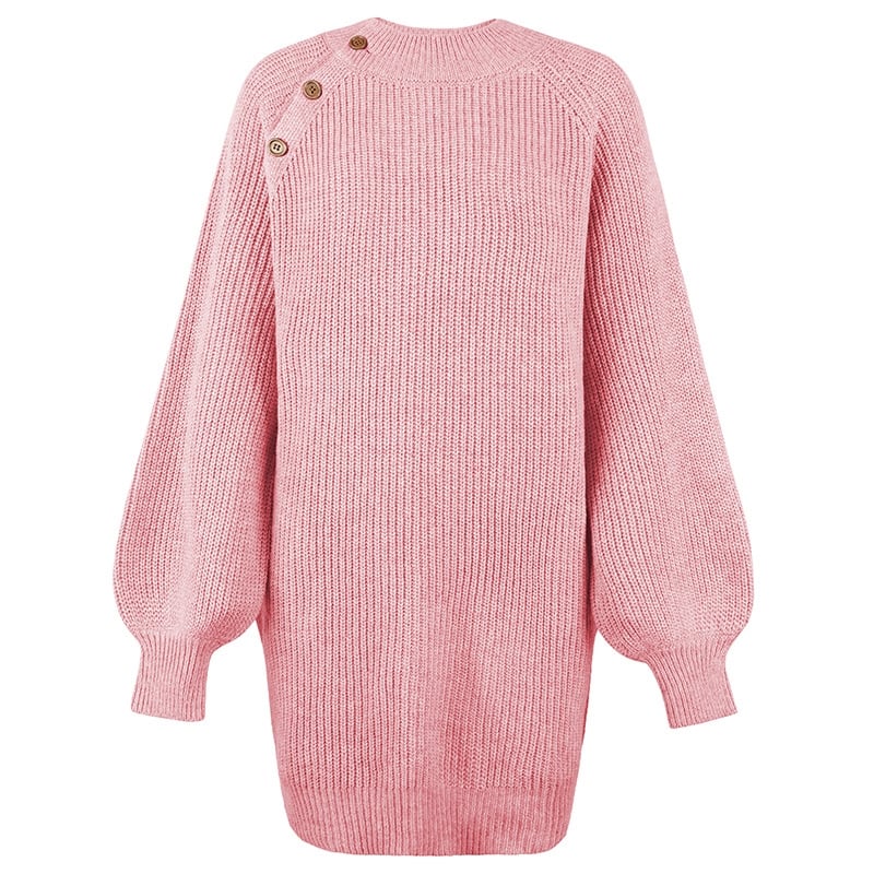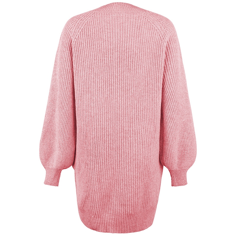 Solid Color Crewneck Long Sleeves Knitted Midi Length Sweater