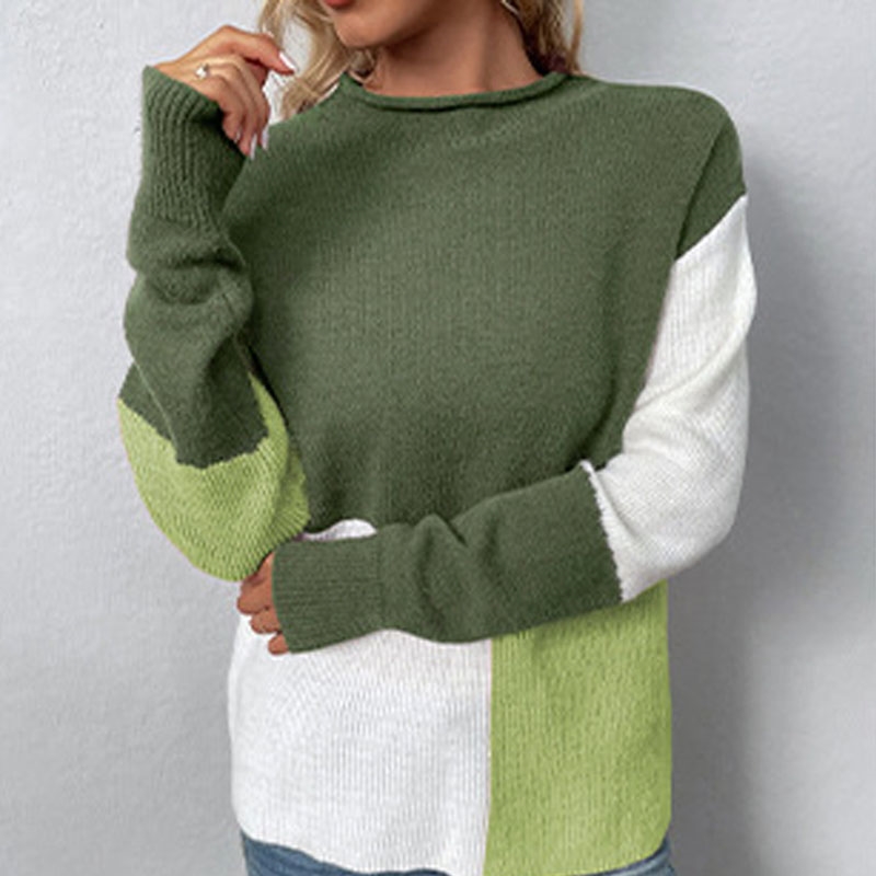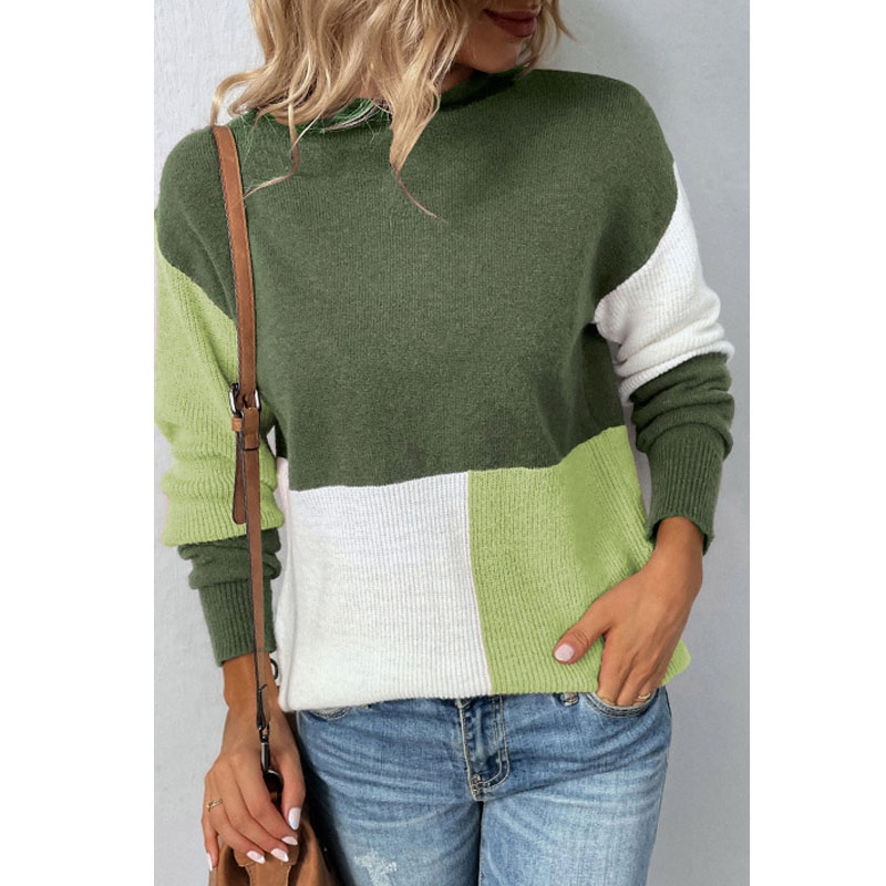 Half Turtleneck Contrast Color Long Sleeves Pullover Sweater