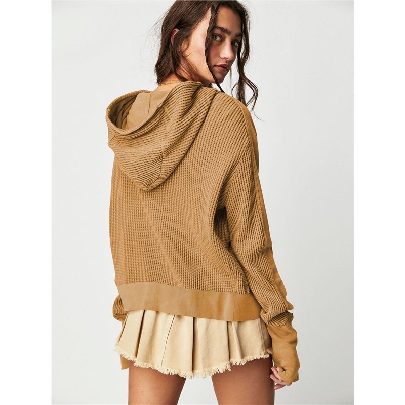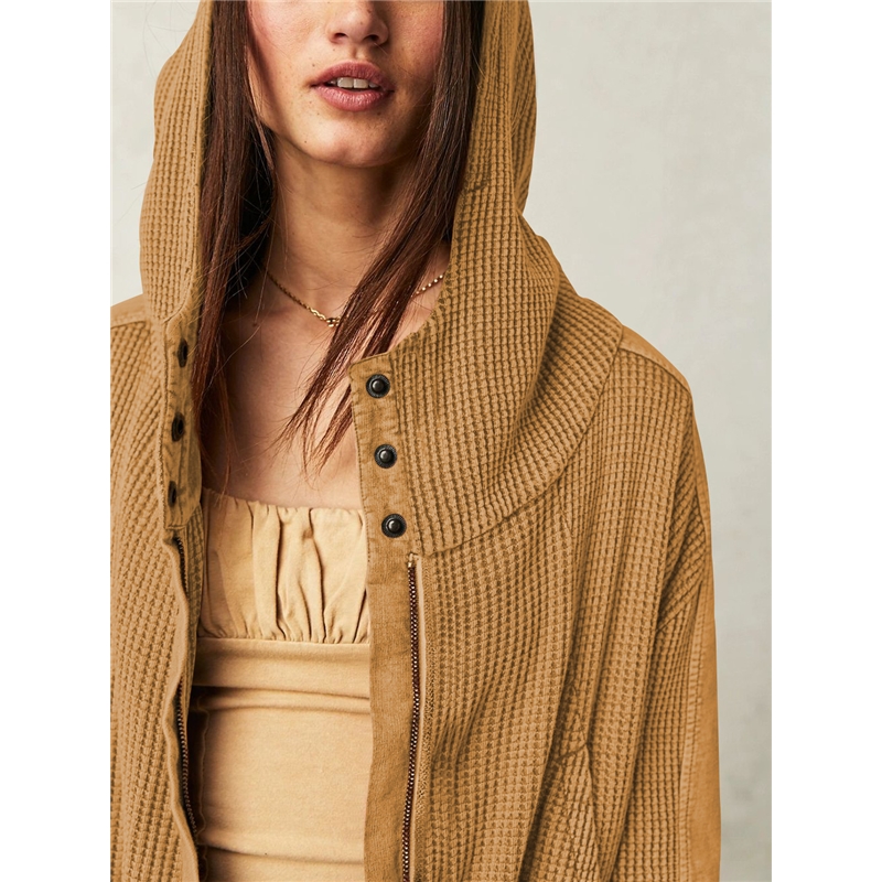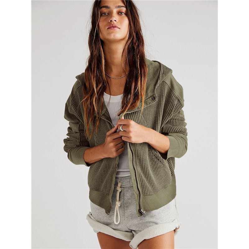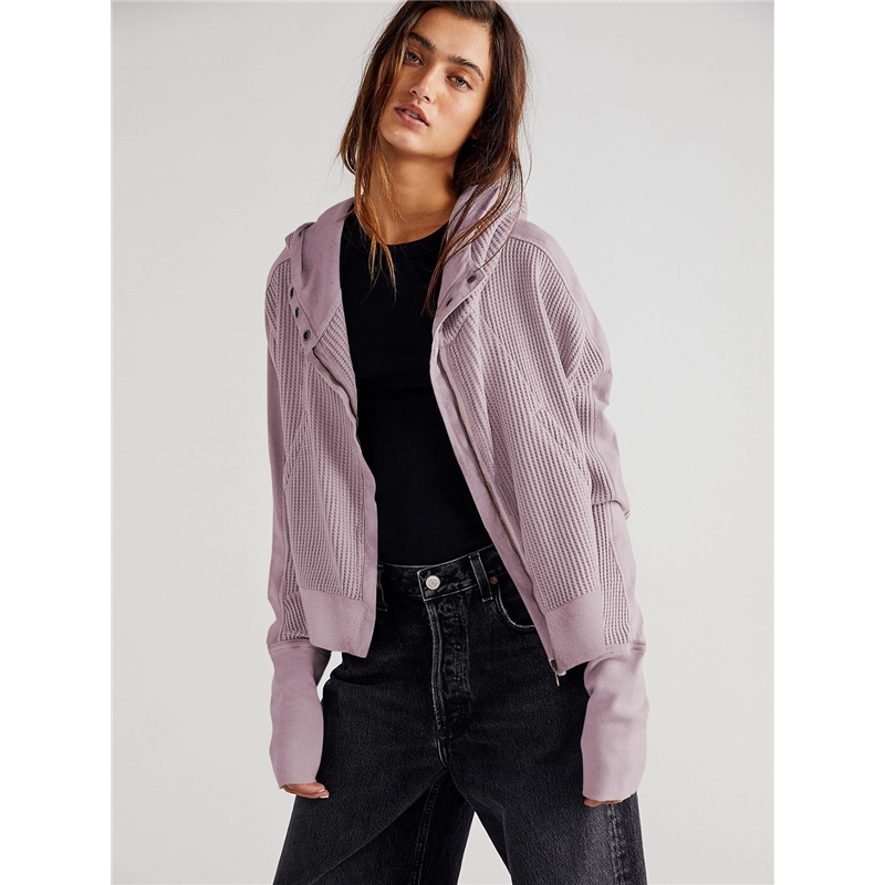 Solid Color Long Sleeves Hooded Zipper Short Outerwear