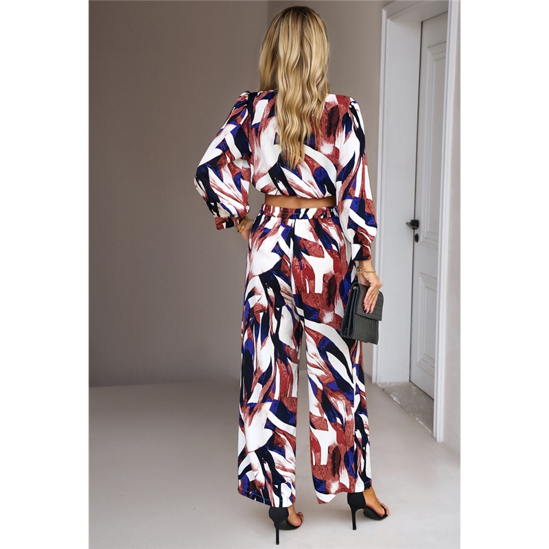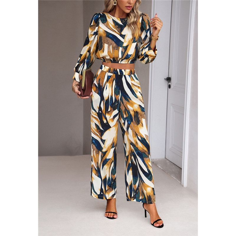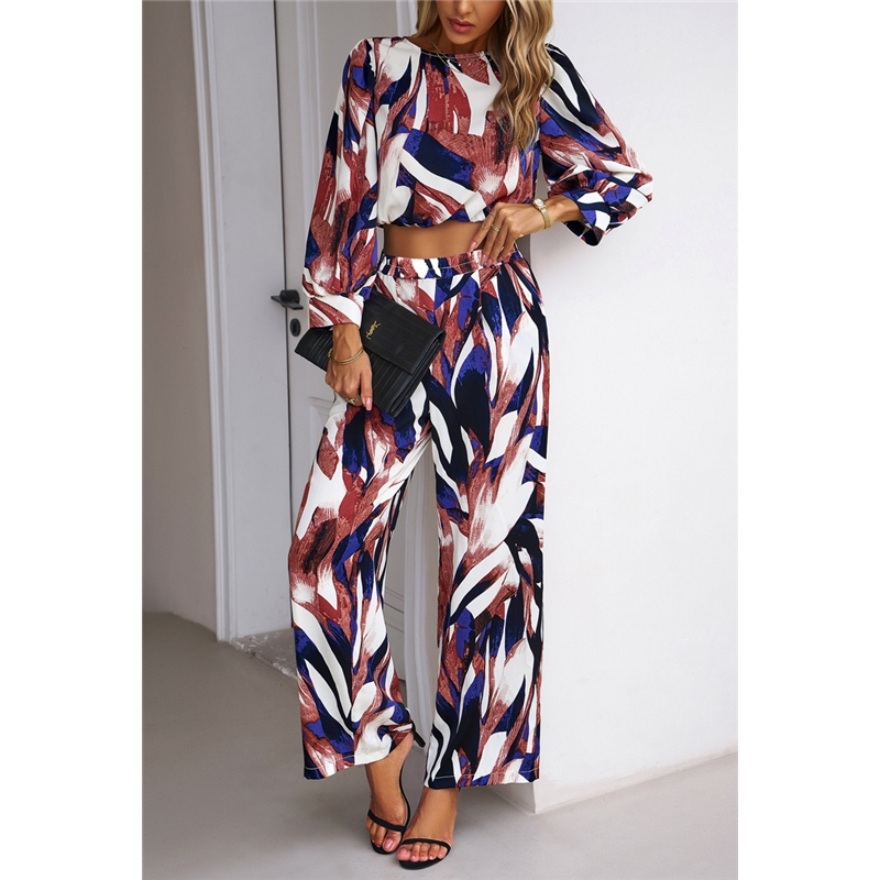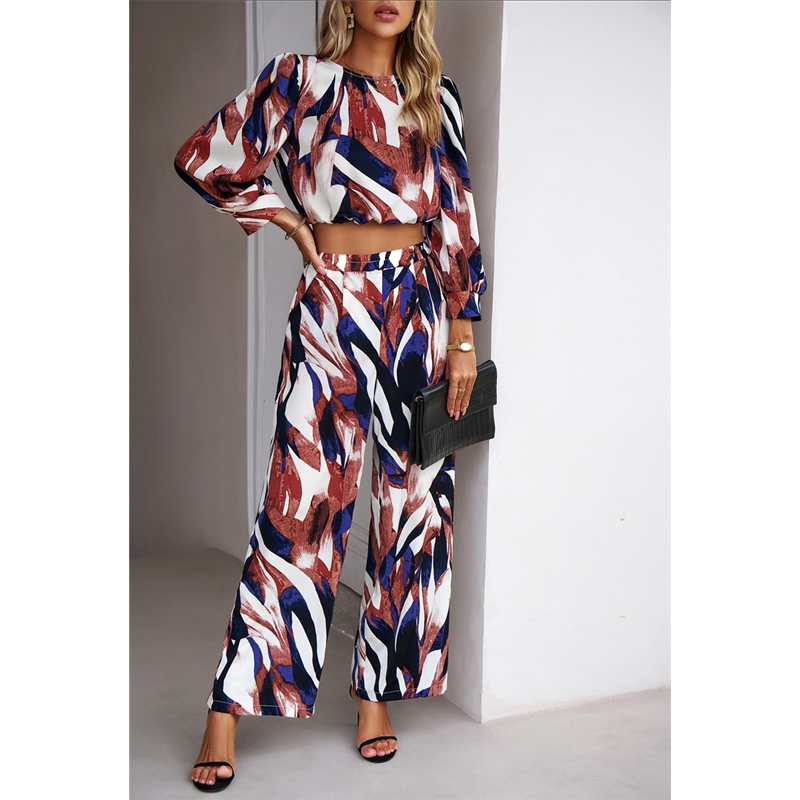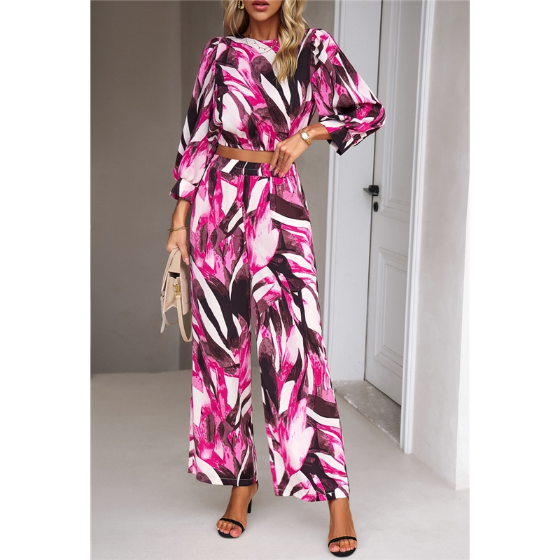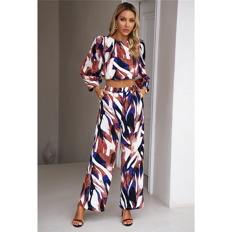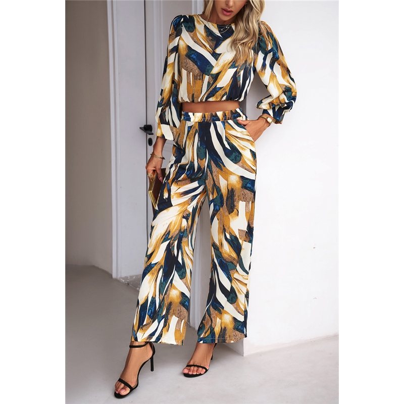1.This Casual Print Bubble Cropped Sleeve Set features a bold print throughout that will pair perfect with your favorite shoes.