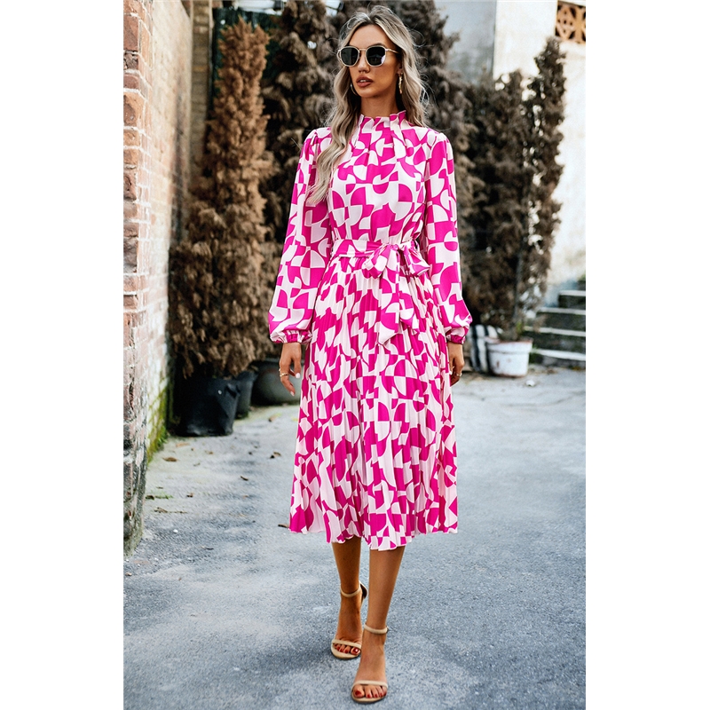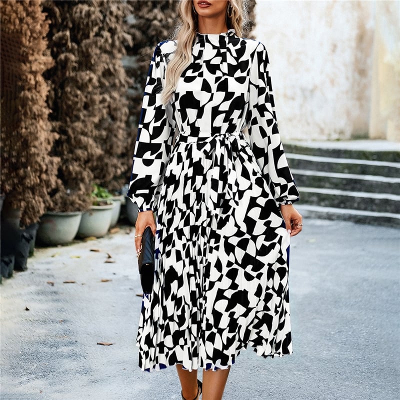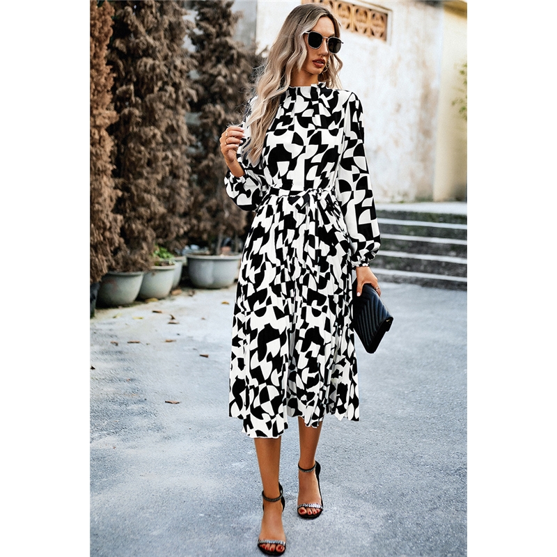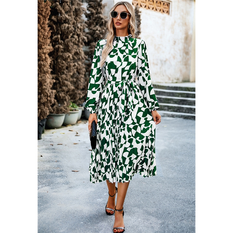Simple Color Block Ruffle Neck Tie Maxi Dress