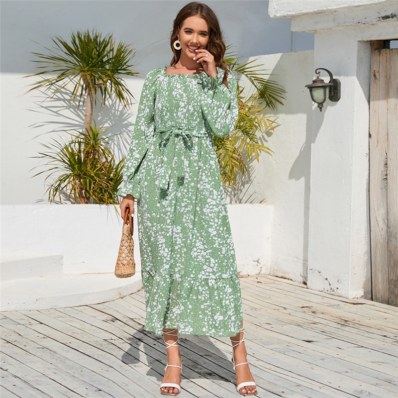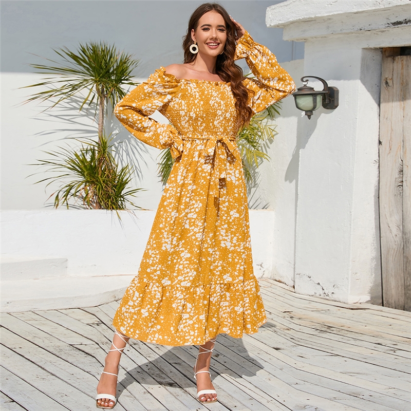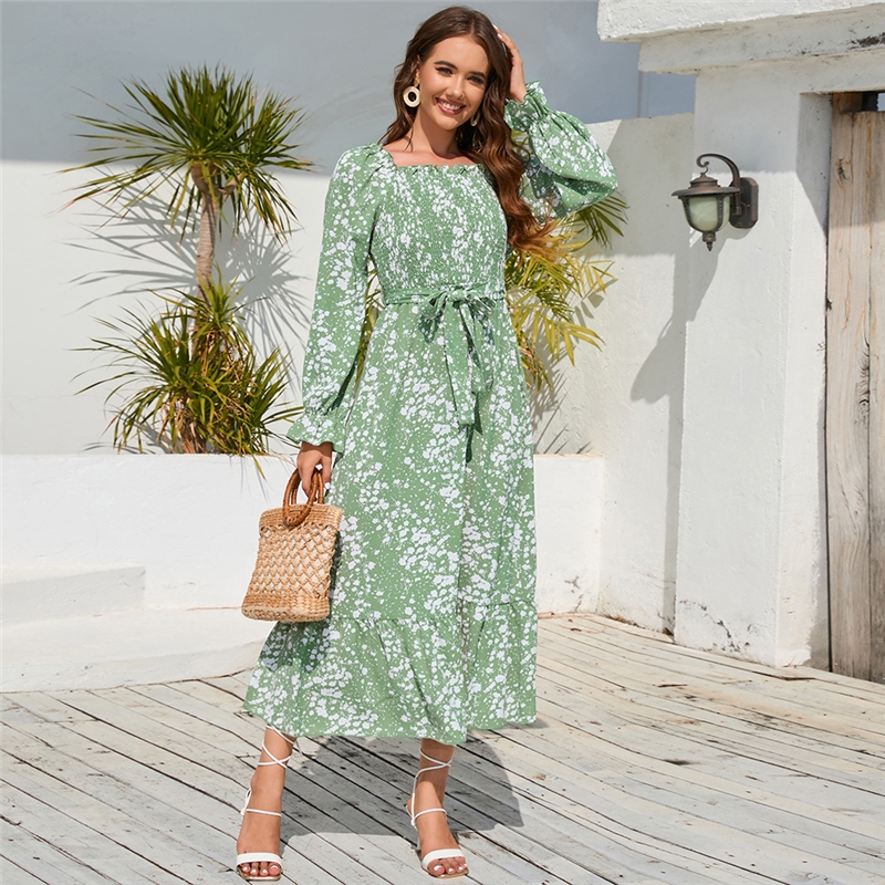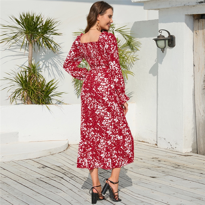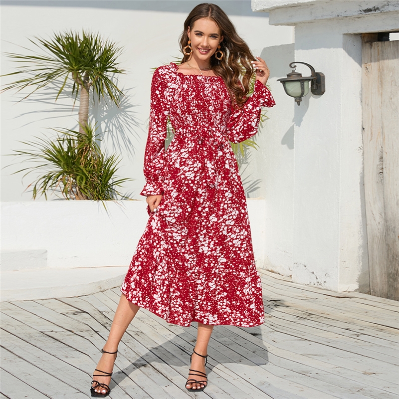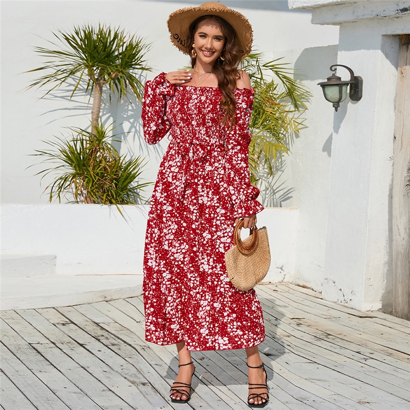 1. This slim floral flared tube top dress features long sleeves and a sweetheart neckline for a flattering look.