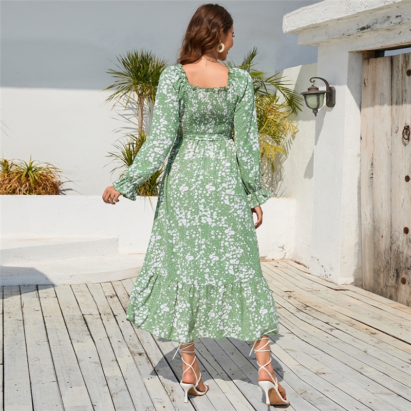 Slim Floral Flared Long-Sleeved Tube Top Dress