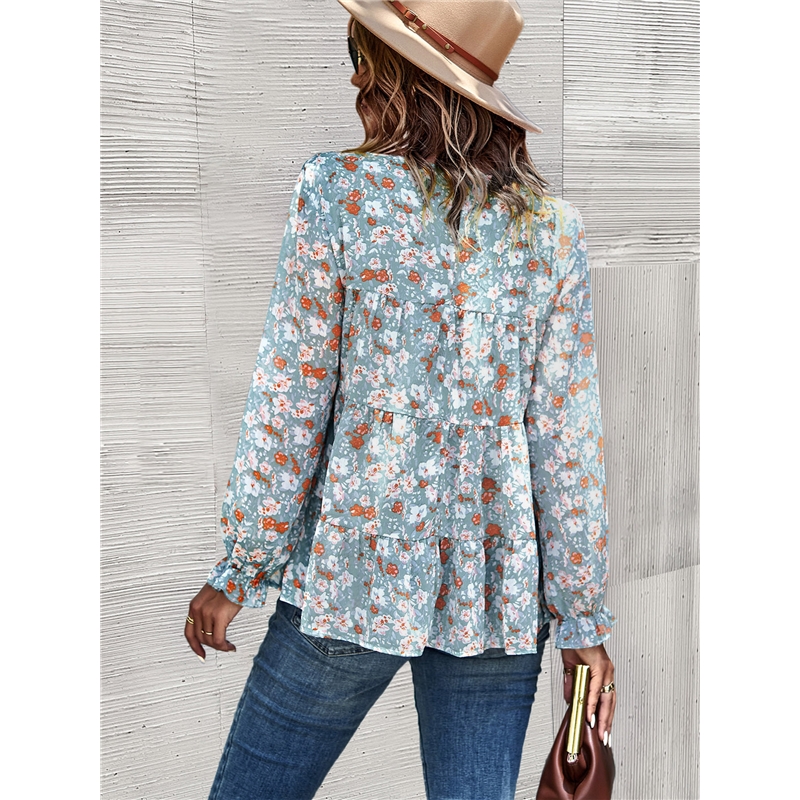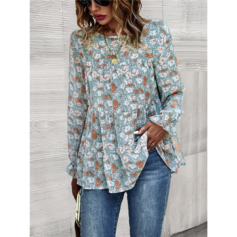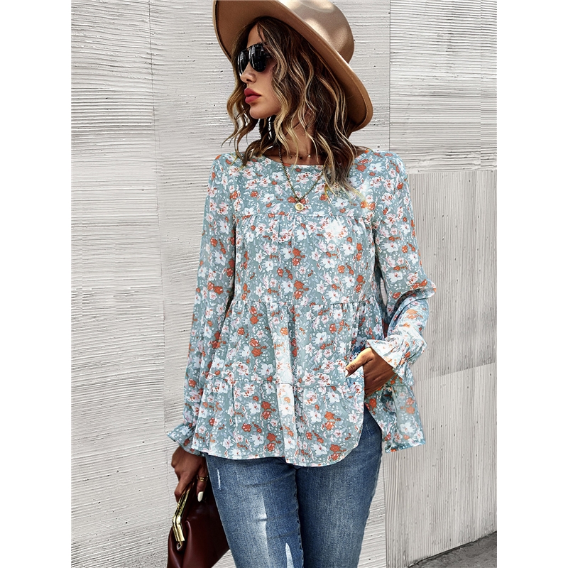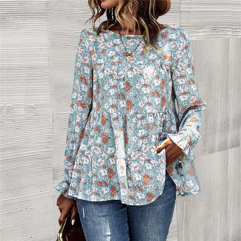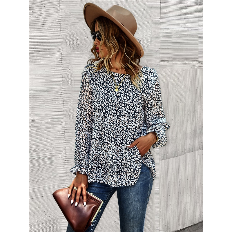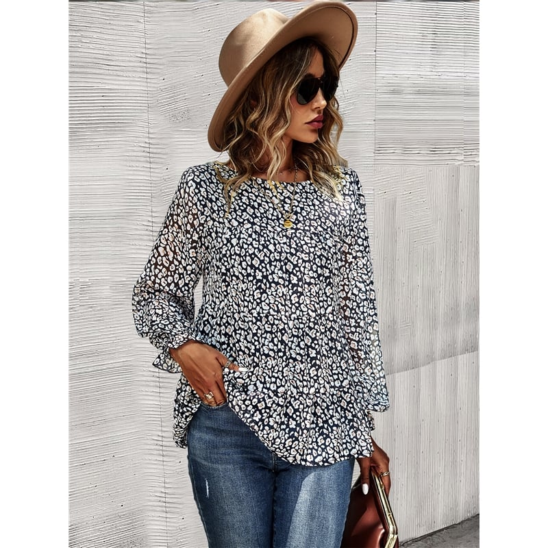 Crewneck Long Sleeves Printing Casual Loose Blouse Top