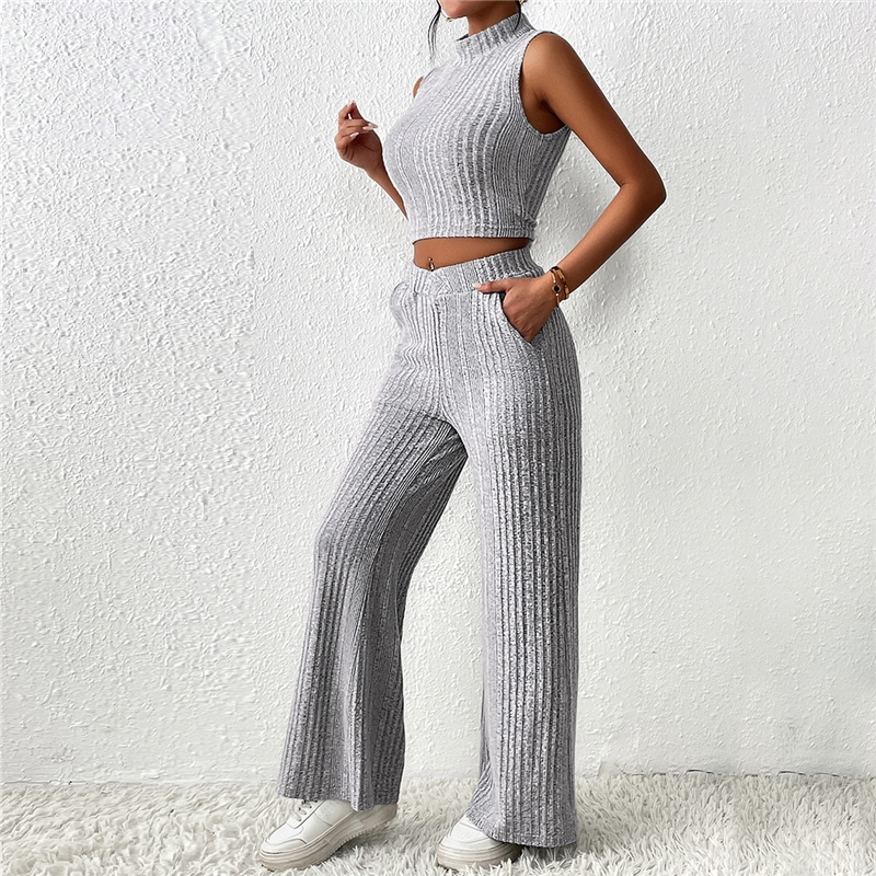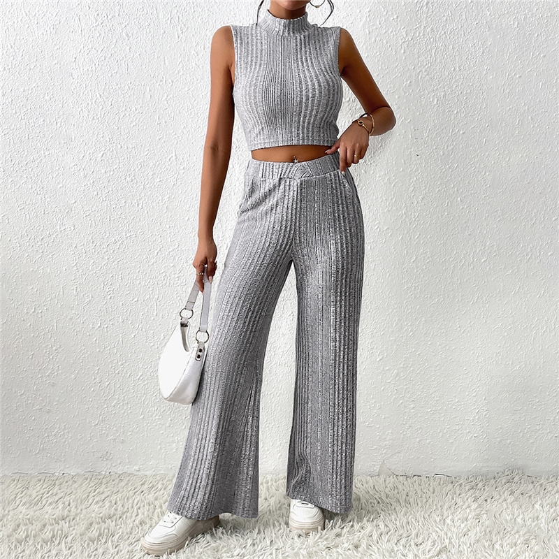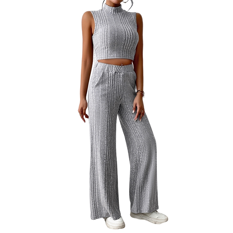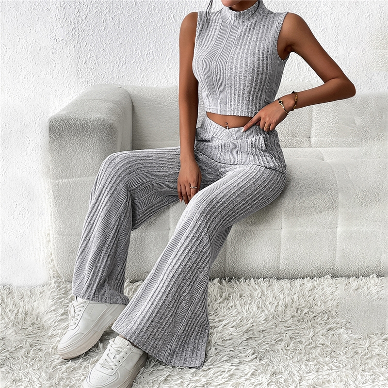 2. Design: The sleeveless tank top features a crewneck design with a flattering fit, while the flared pants create a stylish and elegant silhouette.