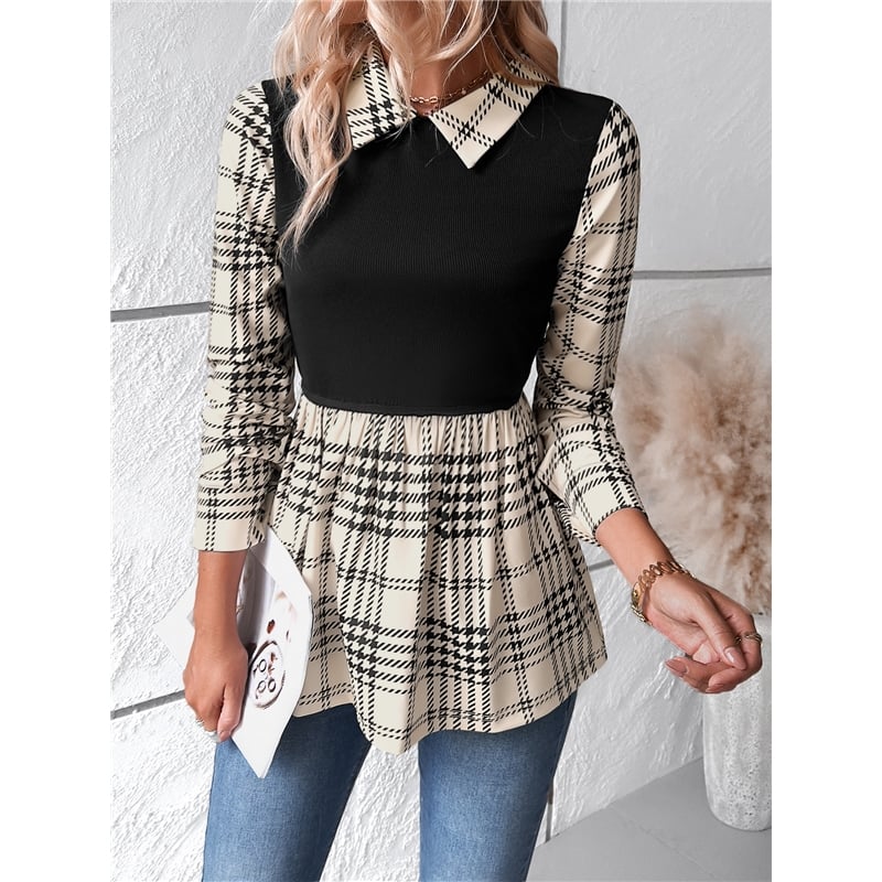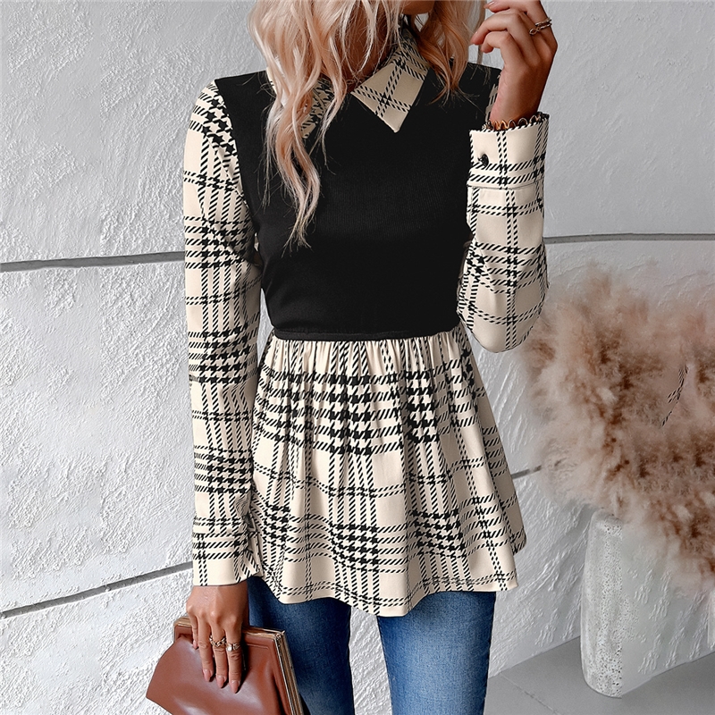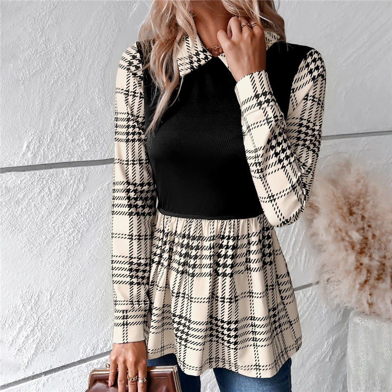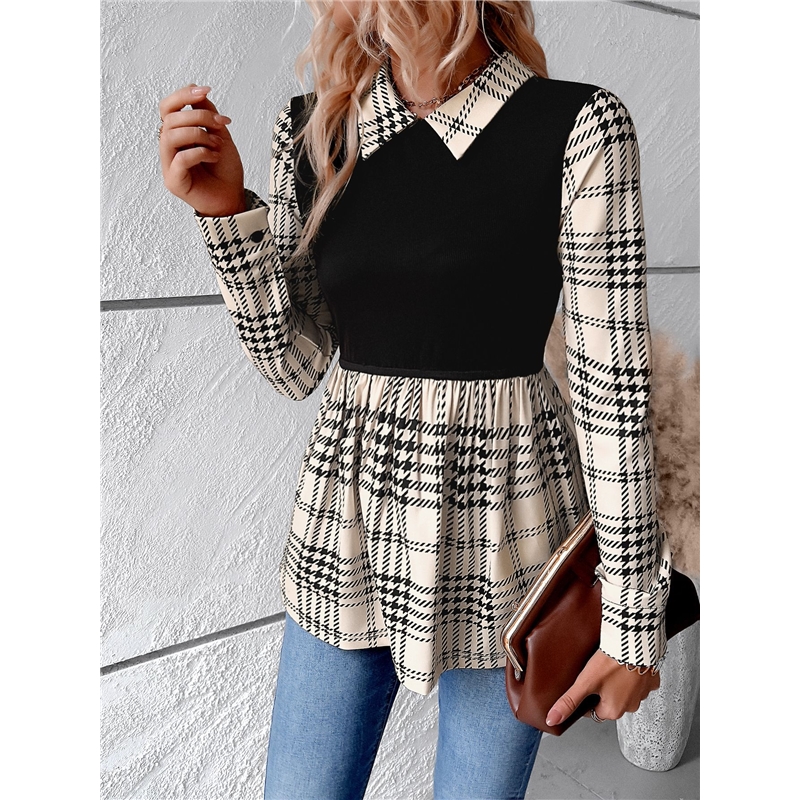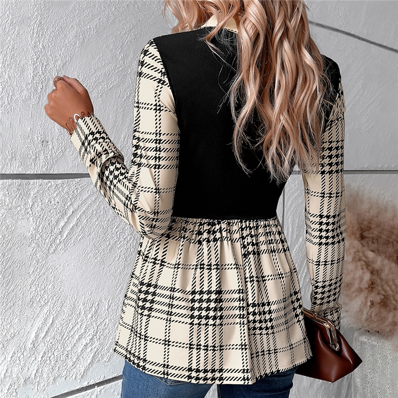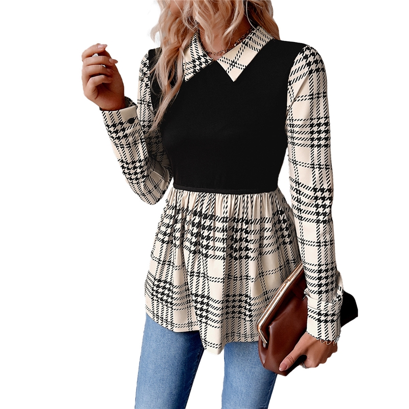 5. Available in a variety of colors and sizes, this lapel patchwork blouse top is the perfect addition to your fall wardrobe. Wear it with jeans, dress pants, or a skirt for an effortless look.