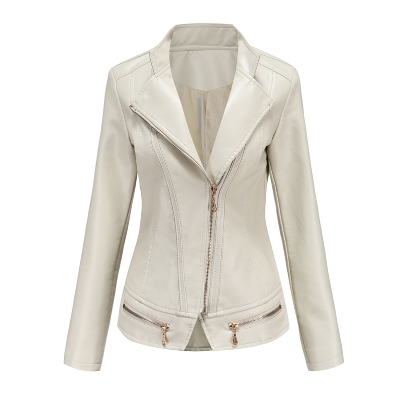 Solid Color Long Sleeves Zipper Thin PU Leather Jacket Outerwear