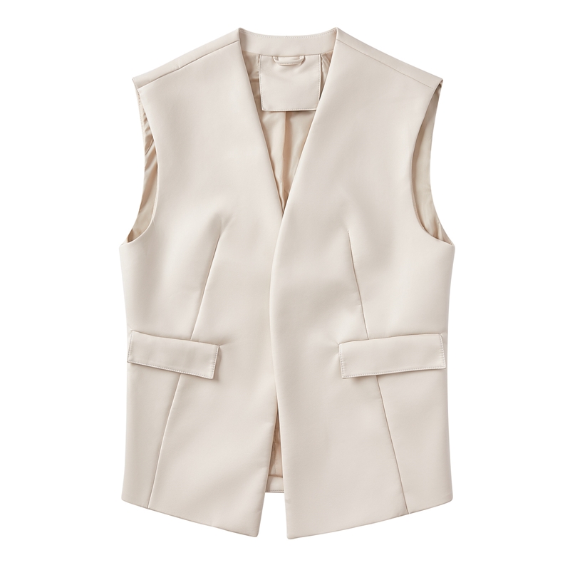 Solid Color Sleeveless V-Neck PU Leather Vest